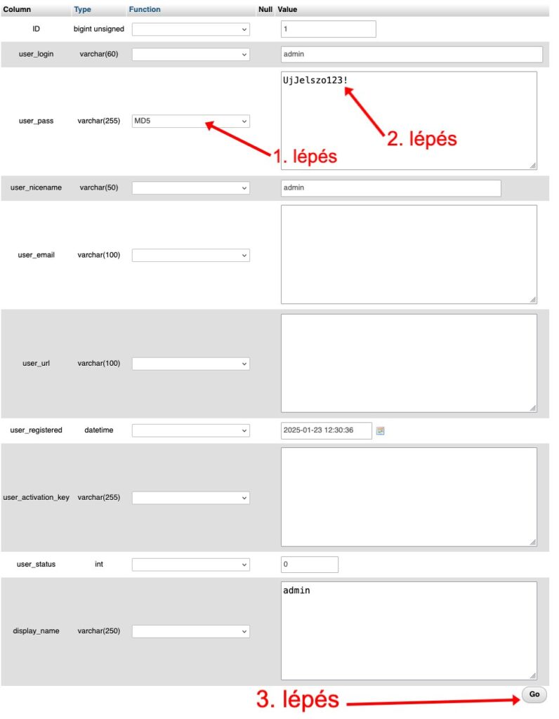 - Ez a módszer közvetlenül az adatbázisban módosítja a jelszót, ezért óvatosan járj el.